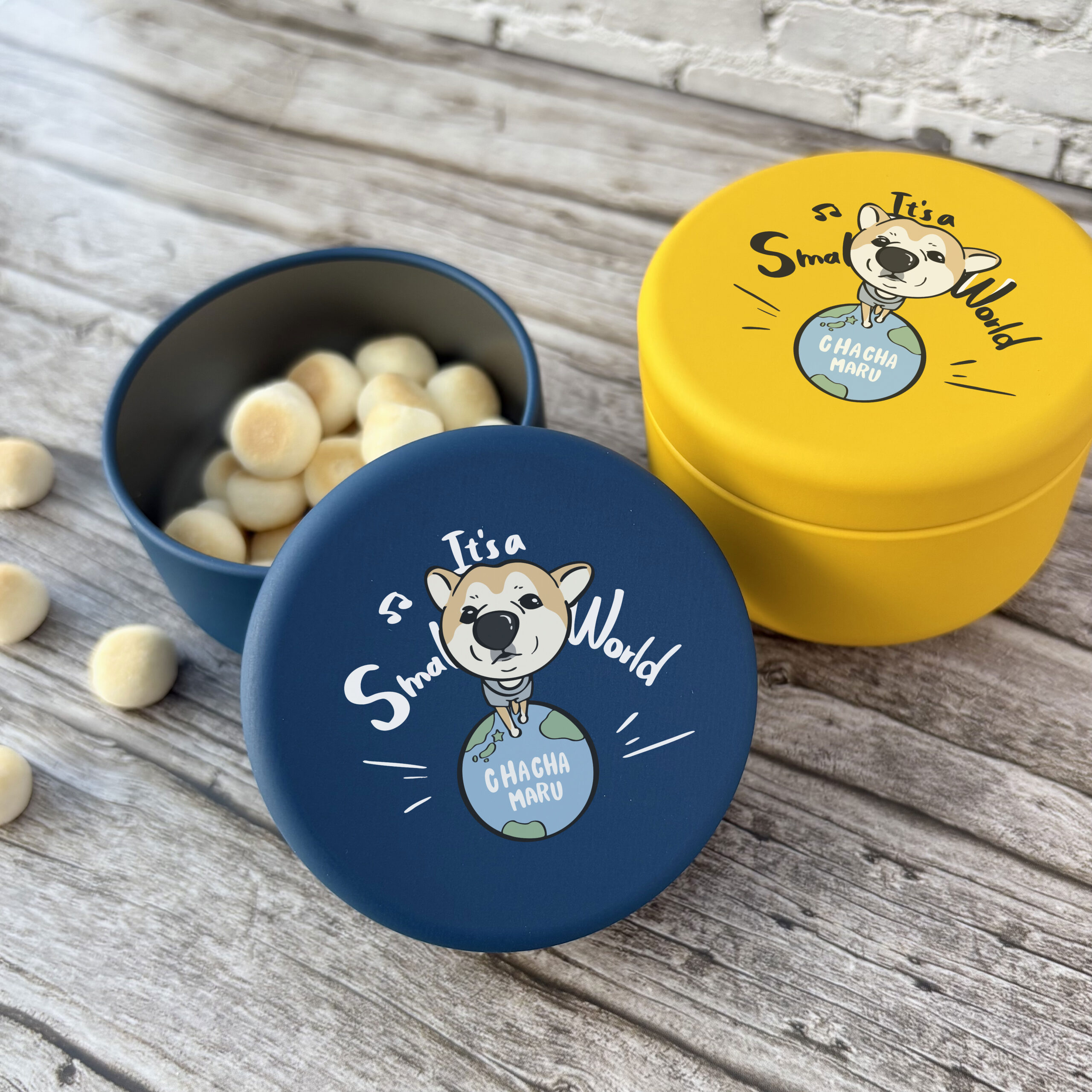 茶々丸のかわいいデザインおやつ缶です!