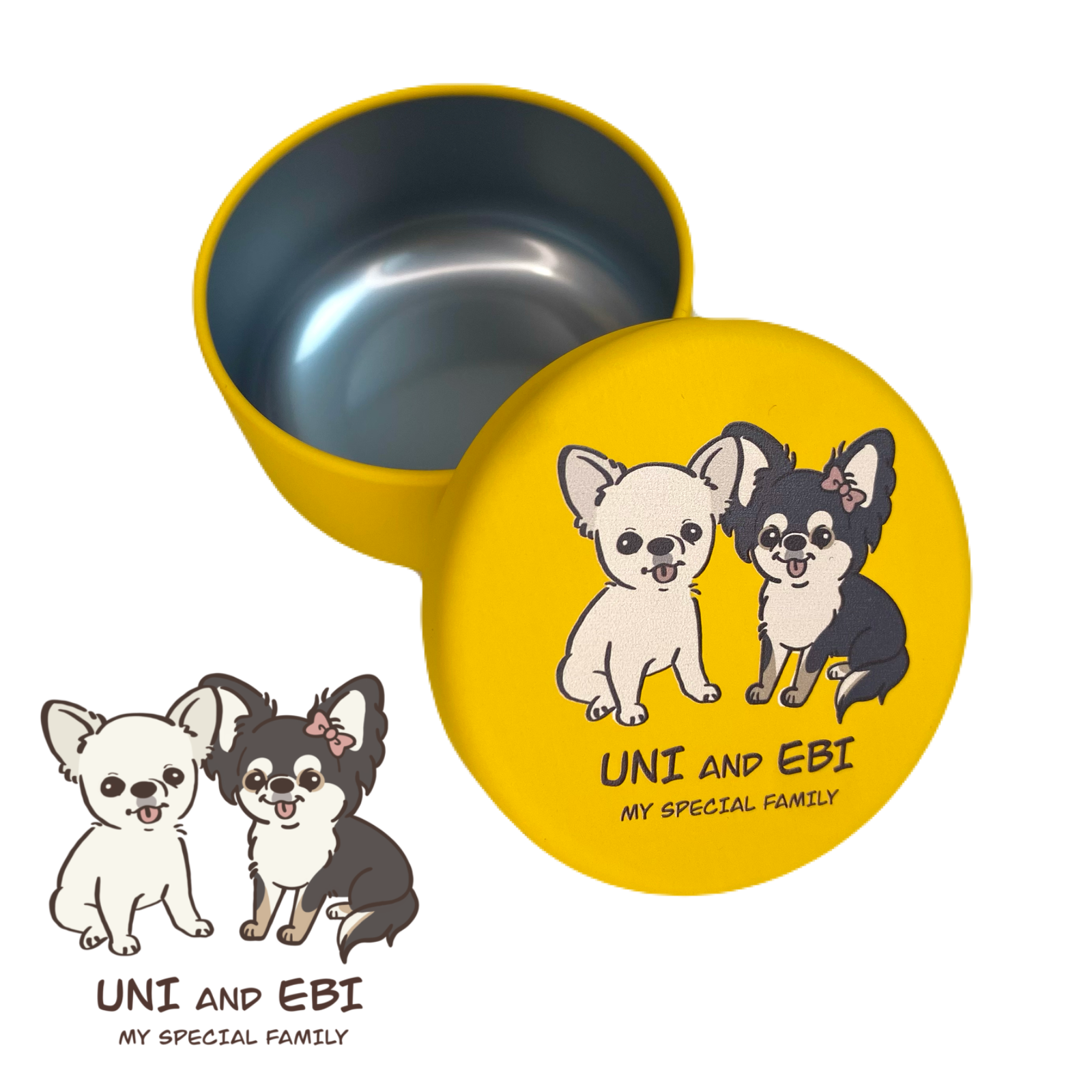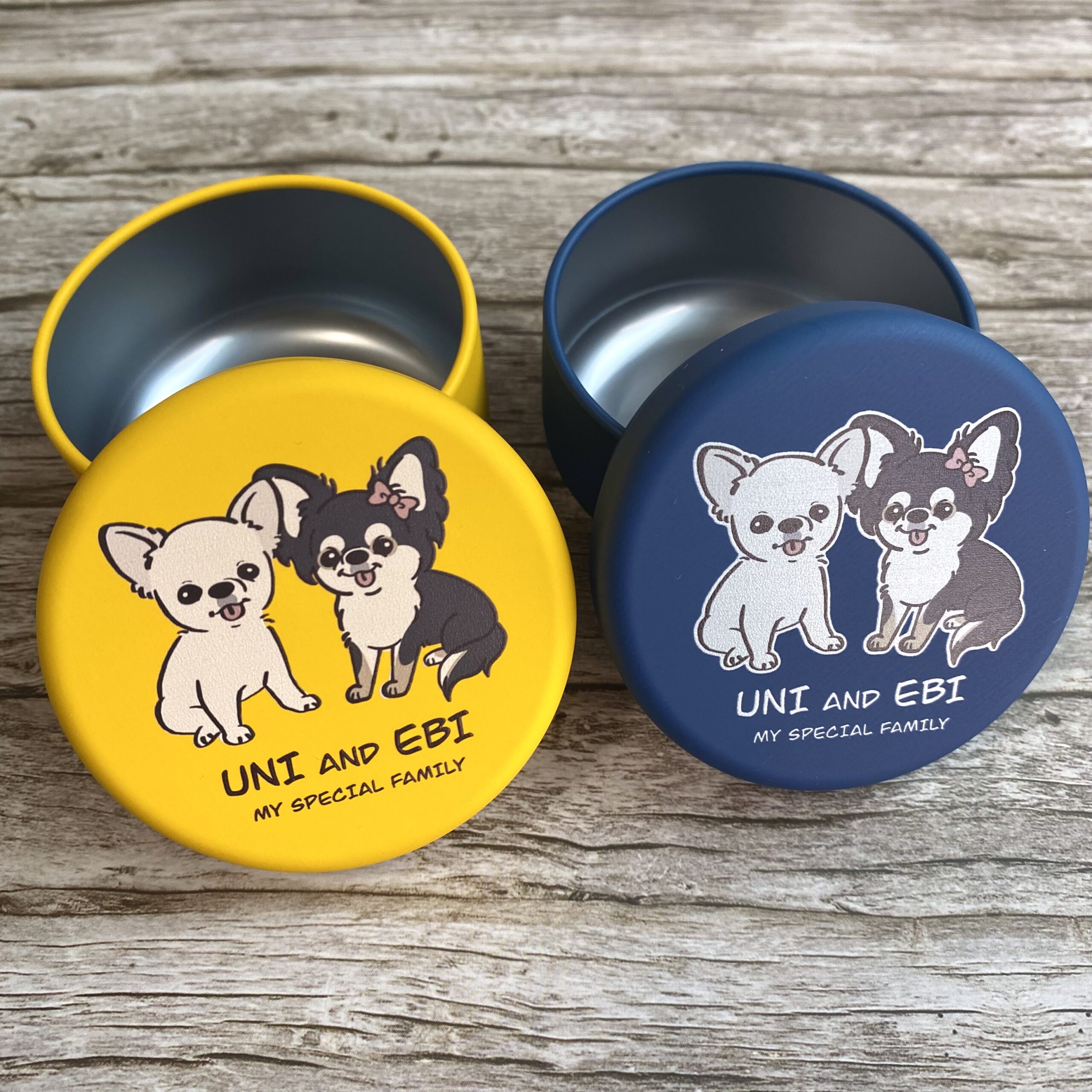 こちらはuni&ebiちゃんのゆるふわテイスト、お座りデザインのおやつ缶になります♪